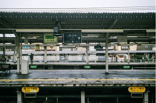 この日は、大阪で一旦用事を片付けた後に京都へ向かった。 朝の神戸、昼前の大阪は晴れ。でも、京都に近づくにつれて雲行きが怪しくなる。 嵐山への乗り換えのために桂駅で降りると、雨が降っていた…雪だったらまだよかったのに。もちろん傘は持ってません。…