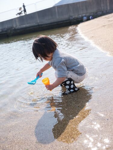 GWの頃ってほんとに海が綺麗ですよね。冬はドス黒いし夏は濁ってる感じ。 先日の写真もそうですが、気候の良さが水に表れていて、撮れて嬉しい写真でした。 (子供のお尻はビシャビシャになりました)